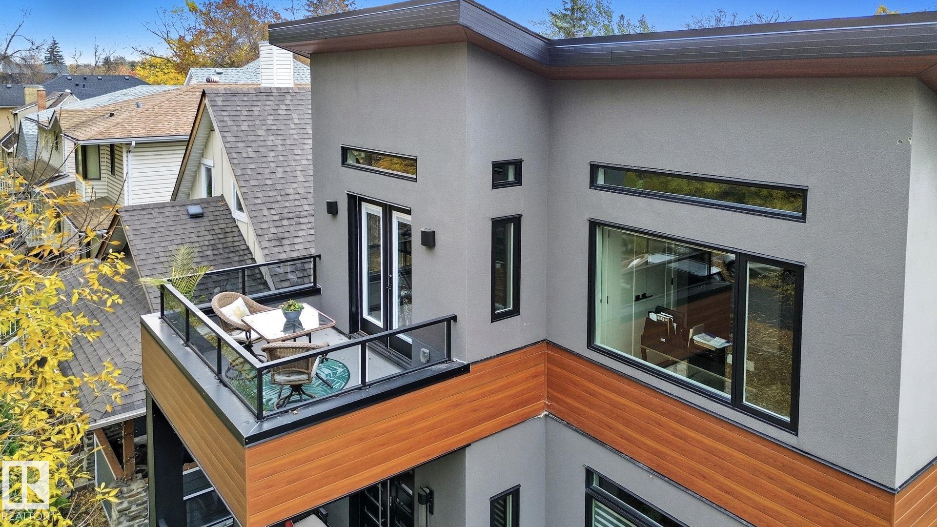 CUSTOM BUILT home with Legal 2-Bedroom Suite in the Heart of Garneau! Just ONE BLOCK from the University of Alberta, Whyte Avenue. Thoughtfully designed and meticulously finished, this home features Central A/C, Eco-Shield Argon windows, and an open-concept main floor filled with high-end custom finishes. showstopper kitchen with Bosch appliances, a waterfall quartz island and backsplash, and a walkthrough pantry with coffee bar. Upstairs, you'll find three bedrooms plus a vaulted den, including a luxurious primary suite with private second-floor balcony overlooking a beautiful, mature tree-lined street. The fully legal 2-bdrm BASEMENT SUITE features a PRIVATE ENTRANCE, its own laundry, and a full kitchen--ideal for rental income or multi-generational living. Additional highlights include a custom-built aluminum front porch, double detached garage, and a south-facing, professionally landscaped, low-maintenance yard. MLS®: E4461680 - Garneau 2 Storey $1,150,000